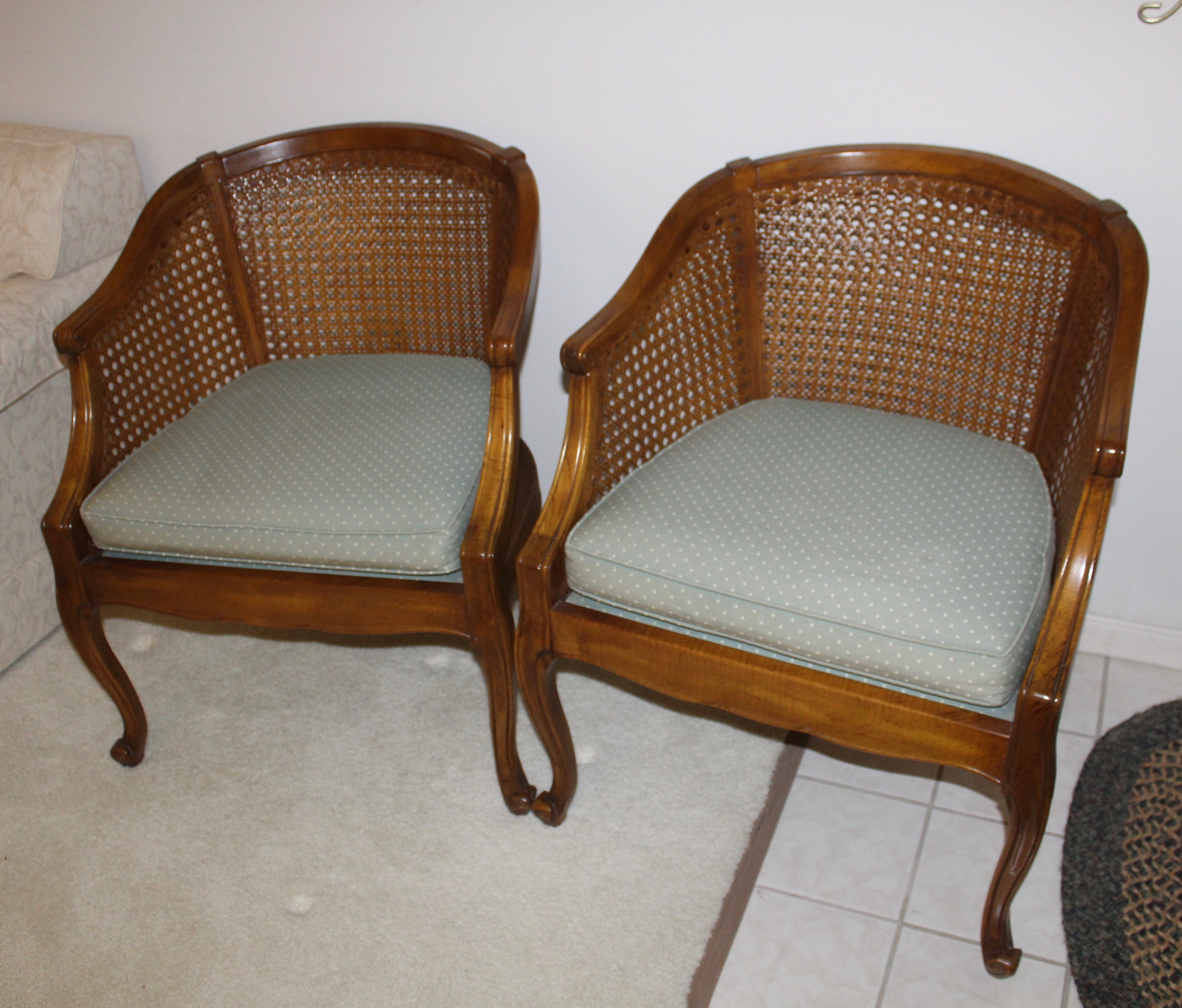 Vintage rattan caned barrel chair with cushion. Make an offer on a great item today! The chair blends in with any type of interior style and rattan, a plant fiber characterized by its lightness and resistance, is ideal both for indoor and outdoor chairs. We will sell also at $975 a pair! Barrel chairs like this one make spectacular blue barrel chair with gold legs: